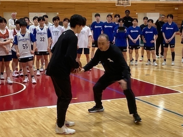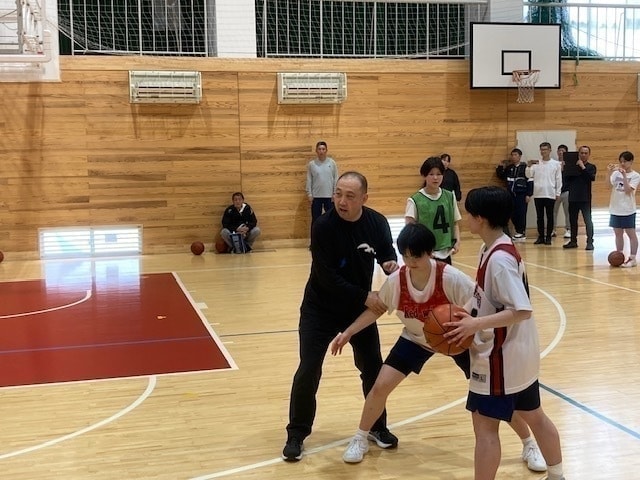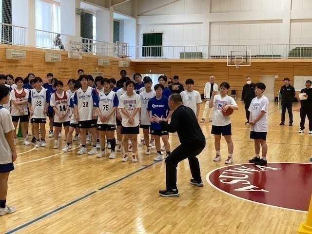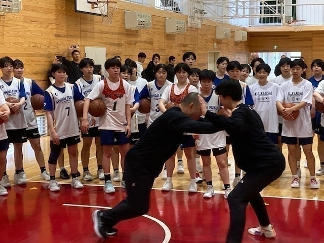 5月10日(土)午前中、足羽高校体育館において第1回指導者養成リフレッシュ研修会を開催しました。 講師には国スポ少年女子スーパーアドバイザーである白鴎大学女子バスケットボール部(栃木県、2024インカレ優勝チーム)の佐藤智信監督を招聘しました。 U16の女子選手60名、指導者26名(B級~D級)が参加し、ディフェンス(1対1ディフェンス、オフボールディフェンス)を中心にご指導いただきました。 |